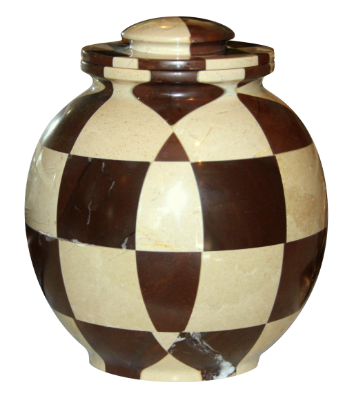 R&S Design Gallery is proud to introduce this newly crafted Triumph Cameo & Chocolate urn, part of the Mosaic line. Made from two of the most beautiful natural stones around; The cameo marble and chocolate marble. This urn is hand crafted and piece together with the newest techniques in the industry. Each urn is made up of 60 individual marble pieces and placed in a mosaic pattern for a one of a kind design. The matching lid is also pieced together from 16 individual marble pieces and helps to carry out the Mosaic pattern throughout the urn. Each Triumph Cameo & Chocolate urn takes our artisan 8 hours to complete, making each urn a piece of art.