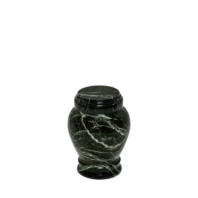 The Embrace Green Zebra Keepsake offers a striking blend of deep green color and white veining for a bold, adventurous memorial. Made from one block of marble, the urn’s seamless design resists cracking over time. The top-opening lid can be permanently sealed with the included adhesive.